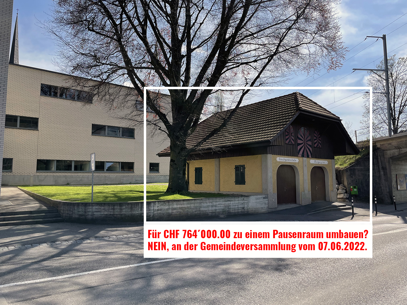 Eigentlich hatte der Gemeinderat geplant, der Gemeindeversammlung im November 2021 einen Kredit über CHF 764´000.00 für einen neuen Pausenraum zu unterbreiten. Da sich aber die Geschäftsprüfungskommission (GPK) in Anbetracht des hohen Betrages ablehnend dazu geäussert hatte, wurde dieses Traktandum zurückgestellt. Nun versucht es der Gemeinderat zusammen mit der Geschäftsleitung ein zweites Mal. Dies mit dem gleichen Vorschlag, ohne Anpassungen am Projekt vorgenommen zu haben – so als würde die Zeit die Probleme der hohen Investition lösen. Dabei trägt die Zeit gerade dazu bei, dass sogar Architekten davon sprechen, dass aktuell ein schlechter Zeitpunkt zum Bauen respektive Investieren sei. Die SVP Region Konolfingen lehnt dieses Traktandum für die Juni-Gemeindeversammlung ab.